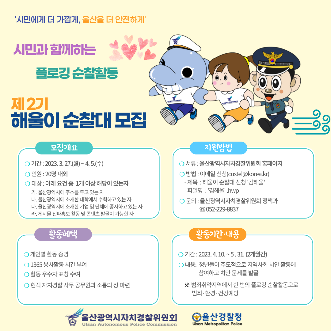 <[공모]제2기 해울이 순찰대 모집(~4.5)>