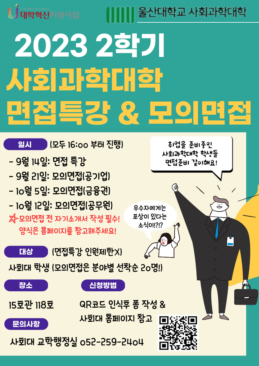 | [안내] 2023-2학기 사회과학대학 면접특강&모의면접 (*수정: 자기소개서 양식 첨부) | |||||