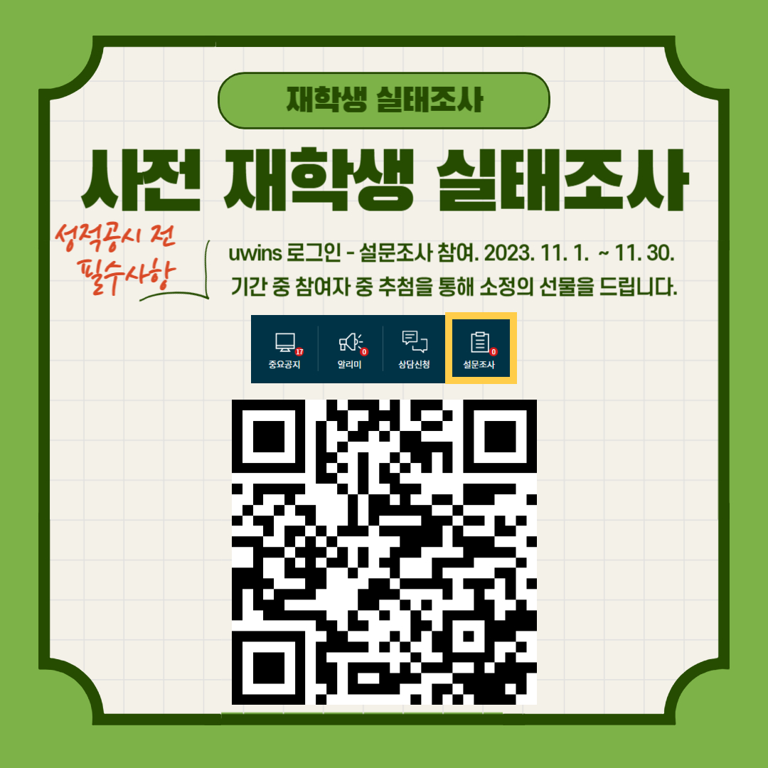 | [안내] 2023학년도 재학생 실태조사 실시(성적 확인 전 필수 사항) | |||||