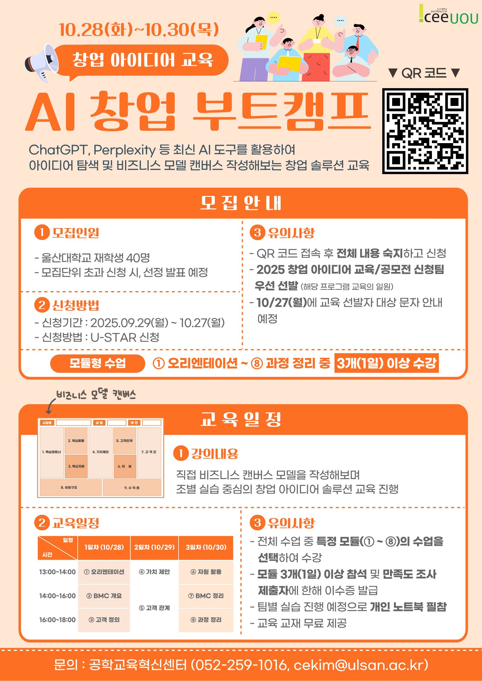 | [울산대학교 공학교육혁신센터] AI 창업 부트캠프 모집 (~10/27) | |||||