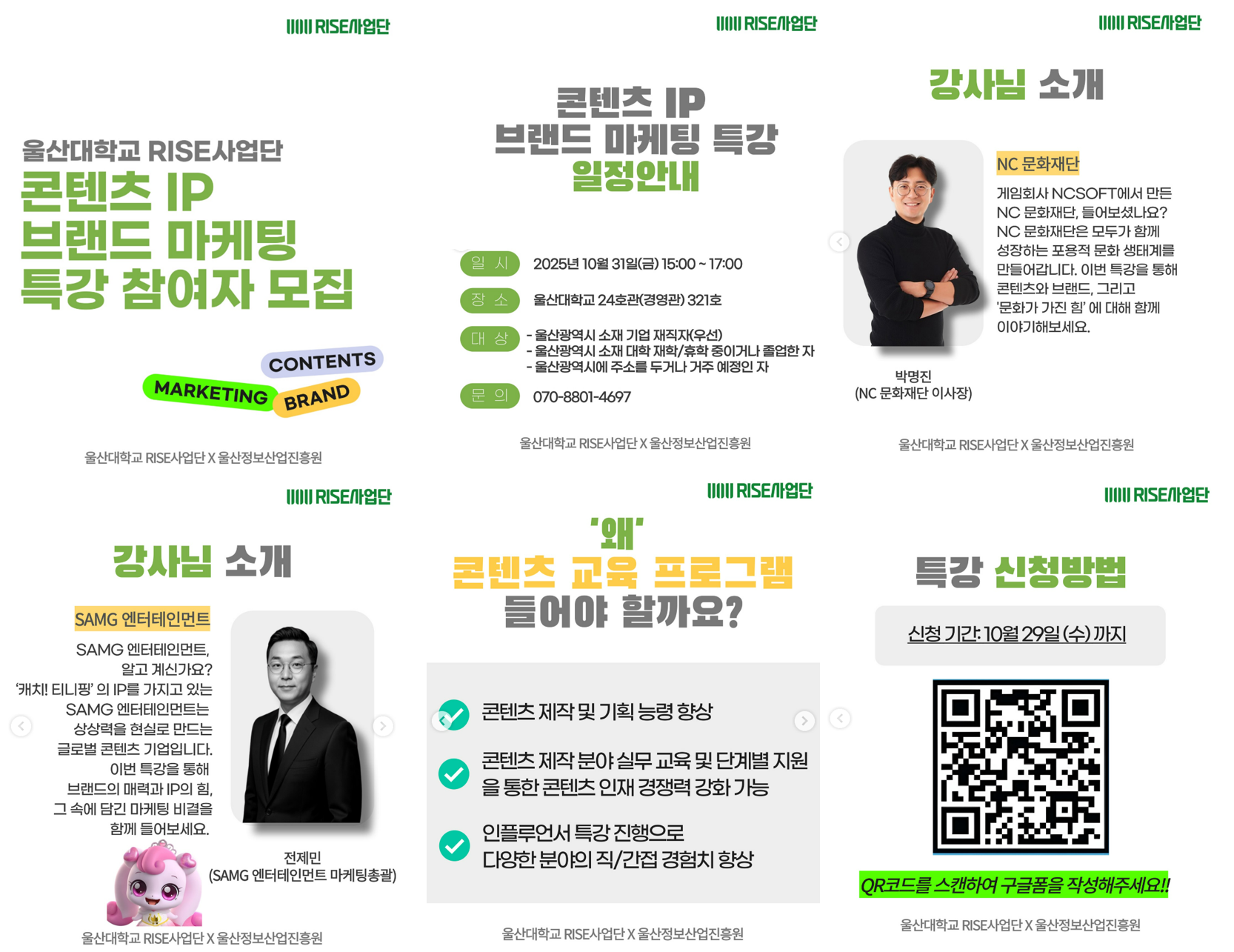 울산대학교 RISE사업단과 울산정보산업진흥원 주관 “콘텐츠 IP 브랜드 마케팅” 특강 참여자 모집 안내